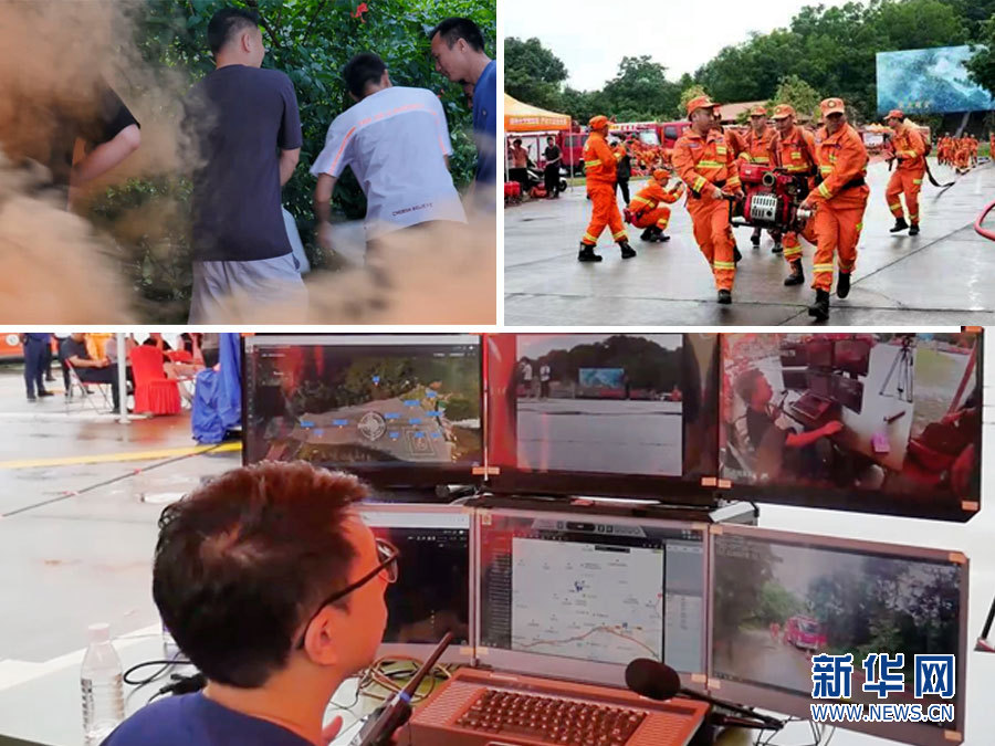 近日,一場撲救森林火災為任務背景的滅火演練在廣州拉開序幕。(拼接圖片)新華網發