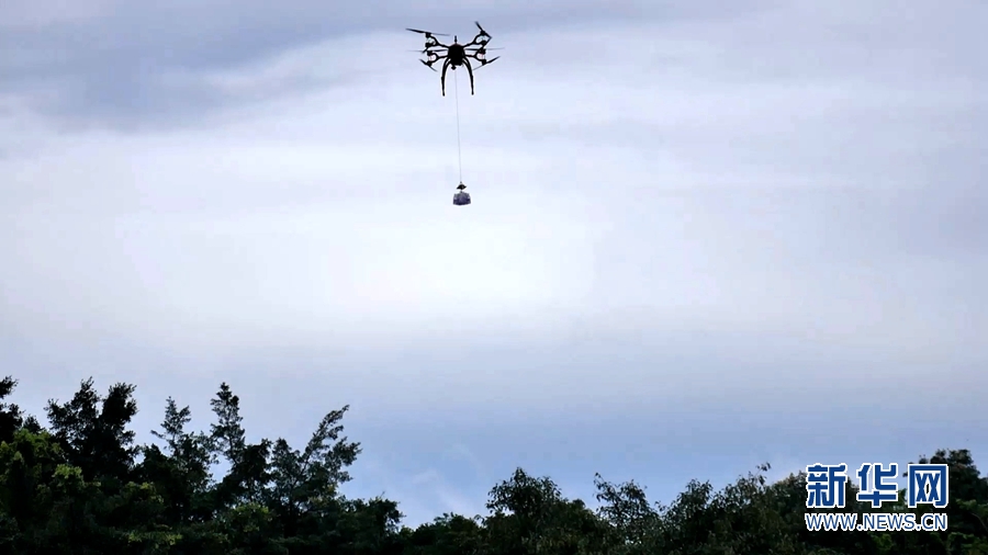無人機“眼觀六路”協同作戰,在現場演練運送物資。新華網發
