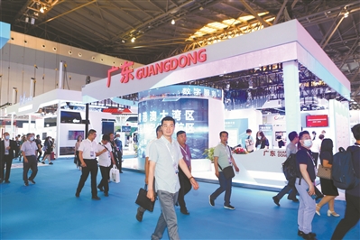 廣東館以“數字服務,灣區領航”為主題,通過數字技術、生物醫藥、創新生態3大領域展示廣東省技術貿易新成果。其中,廣州作為中國重要的技術貿易城市,8個重點園區和13家技術貿易企業代表在廣東展團亮相,展現廣州企業在科技創新方面的強大實力。