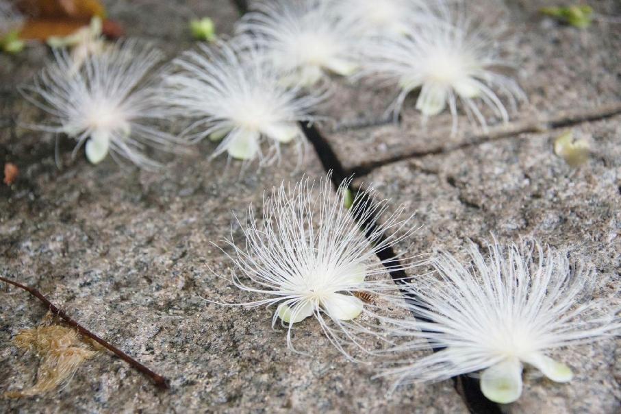 玉蕊的開花時間一般為下午太陽落山后至第二天早上日出前。傍晚,玉蕊花苞滿滿,半夜燦若煙花,花朵純潔無瑕。當清晨太陽升起時,玉蕊凋謝,掉落時的玉蕊如同仙女散花,夢幻如仙子。